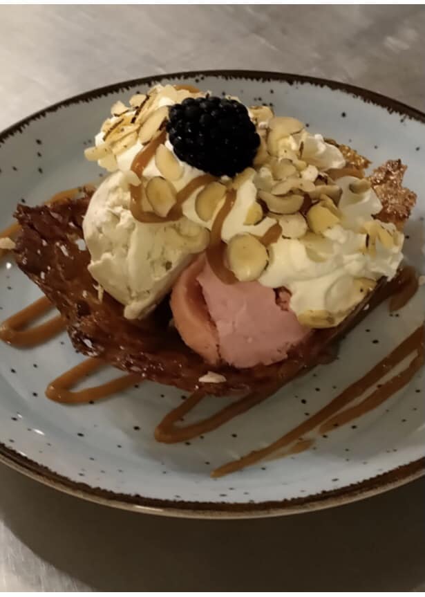| Pandekager 2 stk. Is, flødeskum og bær |