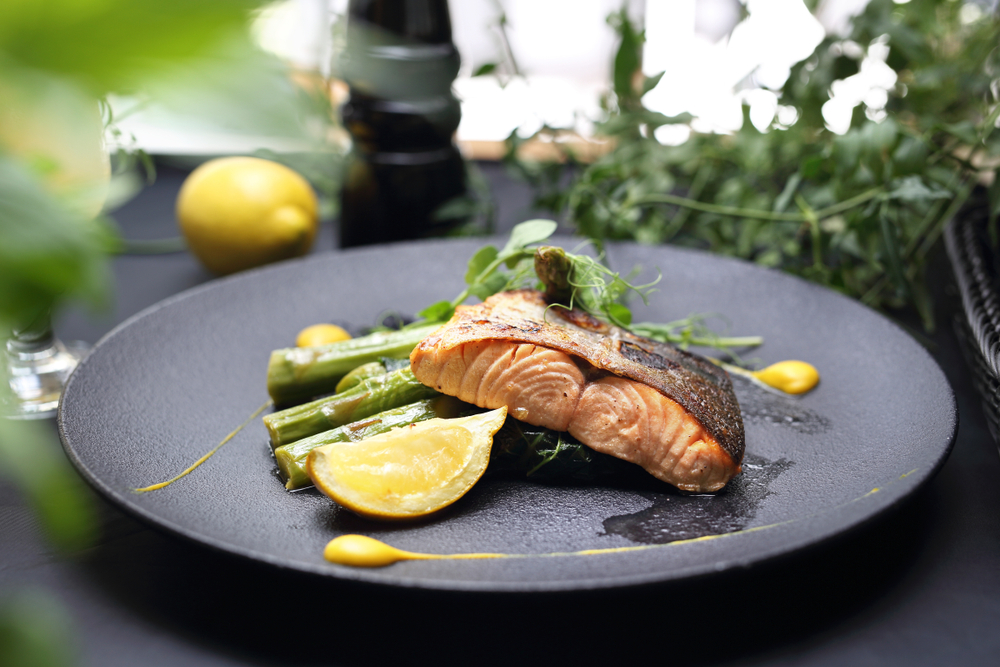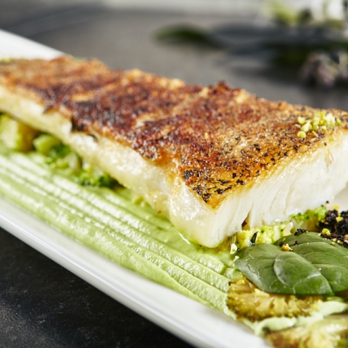 | Helstegt rødspætte Kartofler, garniture, grillet citron og fiskesauce |